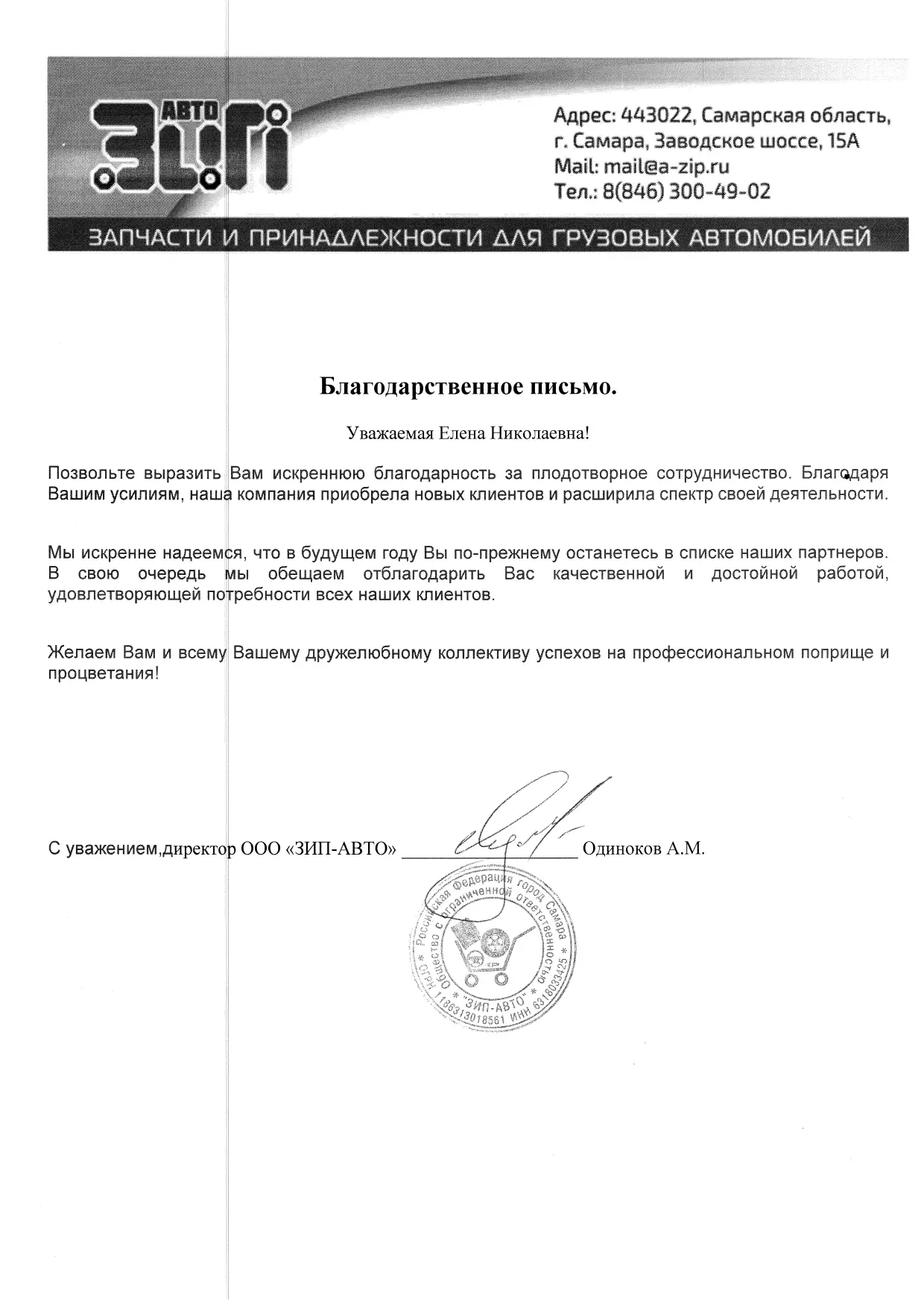 Наши клиенты присылают письма благодарности нам